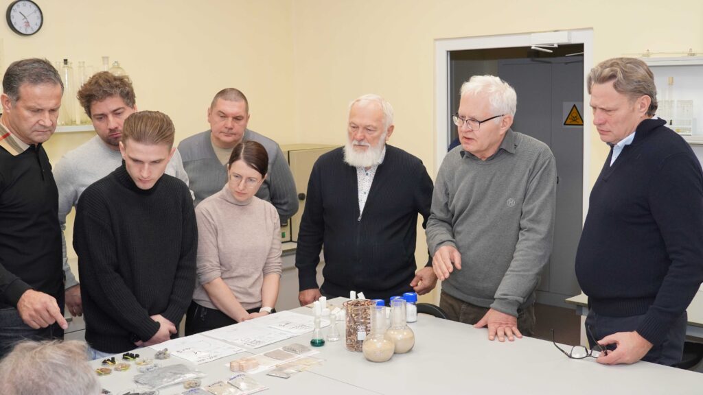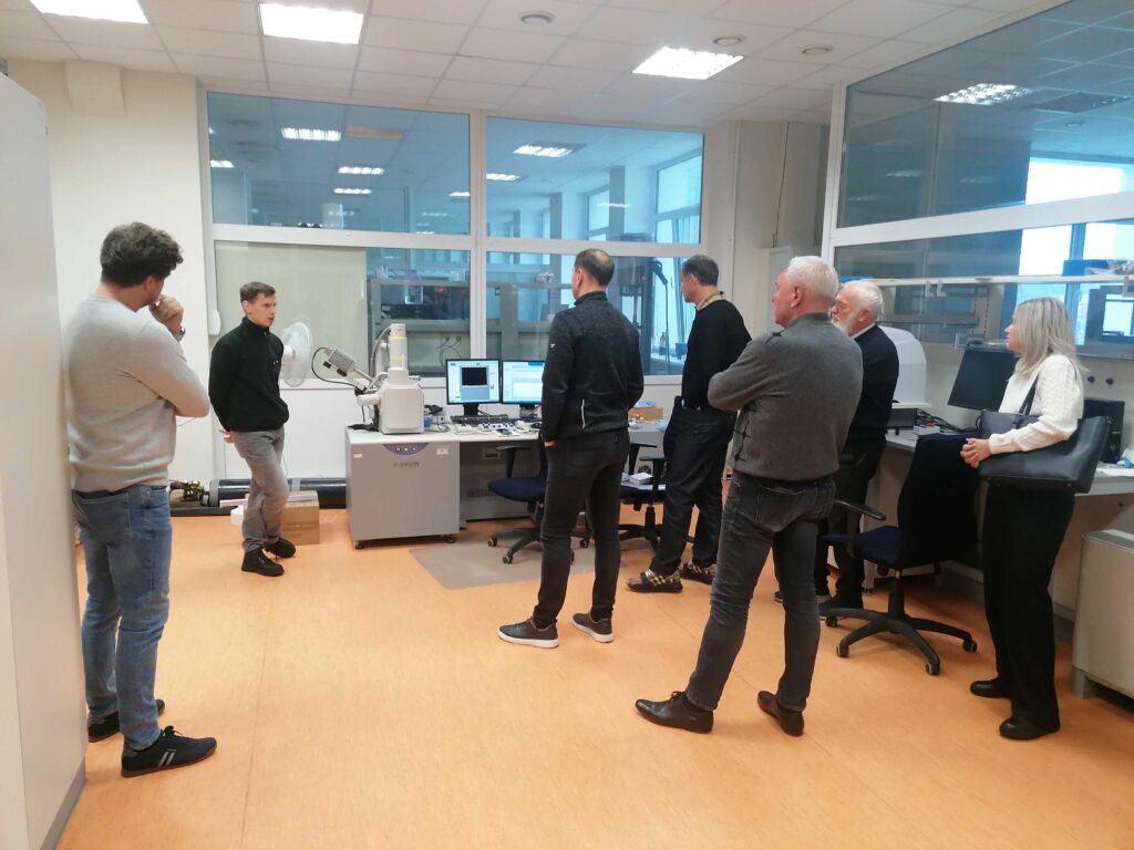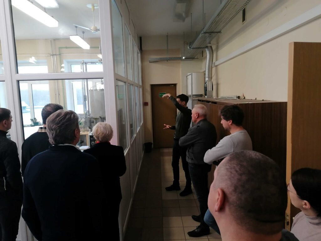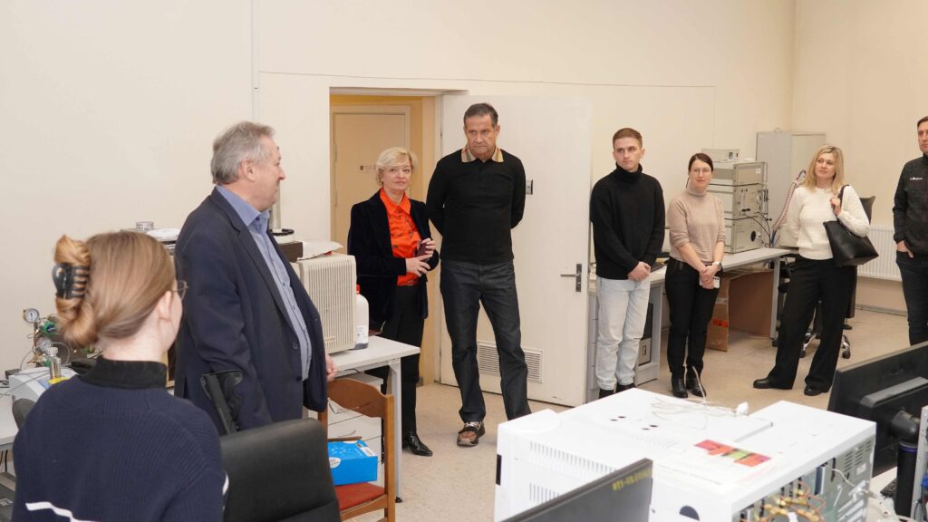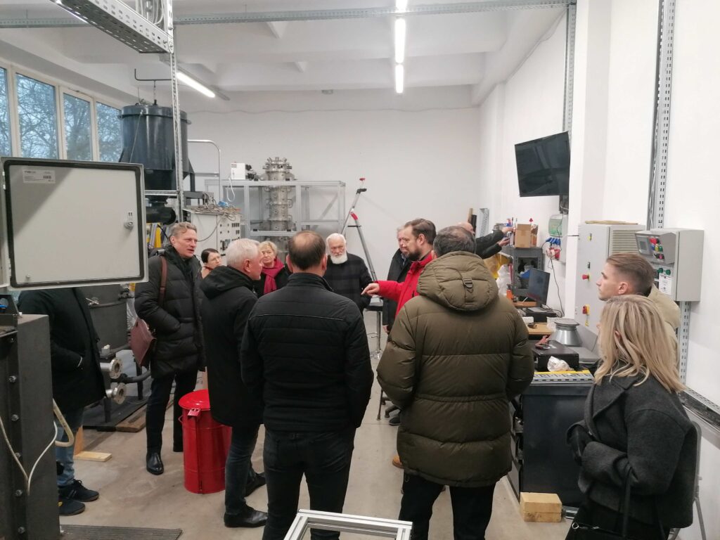 Vizito pradžioje svečiai buvo palydėti į Medžiagų tyrimų ir bandymų laboratoriją, kurioje vyresnysis mokslo darbuotojas dr. Vidas Makarevičius pristatė atliekamus tyrimus, kuriant panaudotų saulės modulių utilizavimo technologiją, bei supažindino su naudojama įranga. Projekto atsakingas vykdytojas dr. Rimantas Levinskas papasakojo apie laboratorijoje sukurtas didelio lyginamojo paviršiaus medžiagas, tinkančias katalizatorių gamybai.