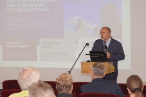 Ekspertas pabrėžė, kad nepaisant Zaporižės atominės elektrinės okupacijos ir nuolatinės grėsmės branduoliniams objektams, Ukrainos branduolinių jėgainių operatorė „Energoatom“ išlaikė aukščiausius branduolinės ir radiacinės saugos standartus. Petro Kotin aptarė Ukrainos žingsnius siekiant energetinės nepriklausomybės nuo Rusijos – perėjimą prie „Westinghouse“ branduolinio kuro, Centrinės panaudoto branduolinio kuro saugyklos pastatymą, taip pat planus vystyti pažangius „AP1000“ reaktorius ir mažosios galios modulinius reaktorius (SMR). Jo teigimu, Ukrainos patirtis parodė, kad net ekstremaliomis sąlygomis įmanoma išlaikyti branduolinės energetikos patikimumą, saugumą ir technologinę nepriklausomybę.
