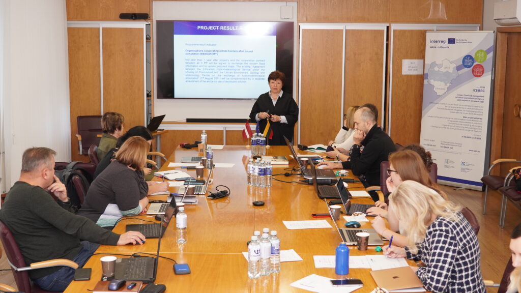 During the meeting, project partners discussed the main results achieved and presented the draft guidelines for early warning of ice-jam floods, risk mitigation measures, and hazard and risk maps for the pilot areas. Discussions were also held on the agenda of the upcoming meetings with stakeholders from Lithuania and Latvia and on the presentations for the Final Conference.