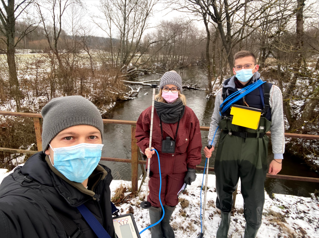 On December 14-16, 2020, the project experts (Diana Meilutytė-Lukauskienė, Vytautas Akstinas and Serhii Nazarenko) went on an expedition, during which the flow rates in different sections of the Varduva River and the Kviste River were measured.