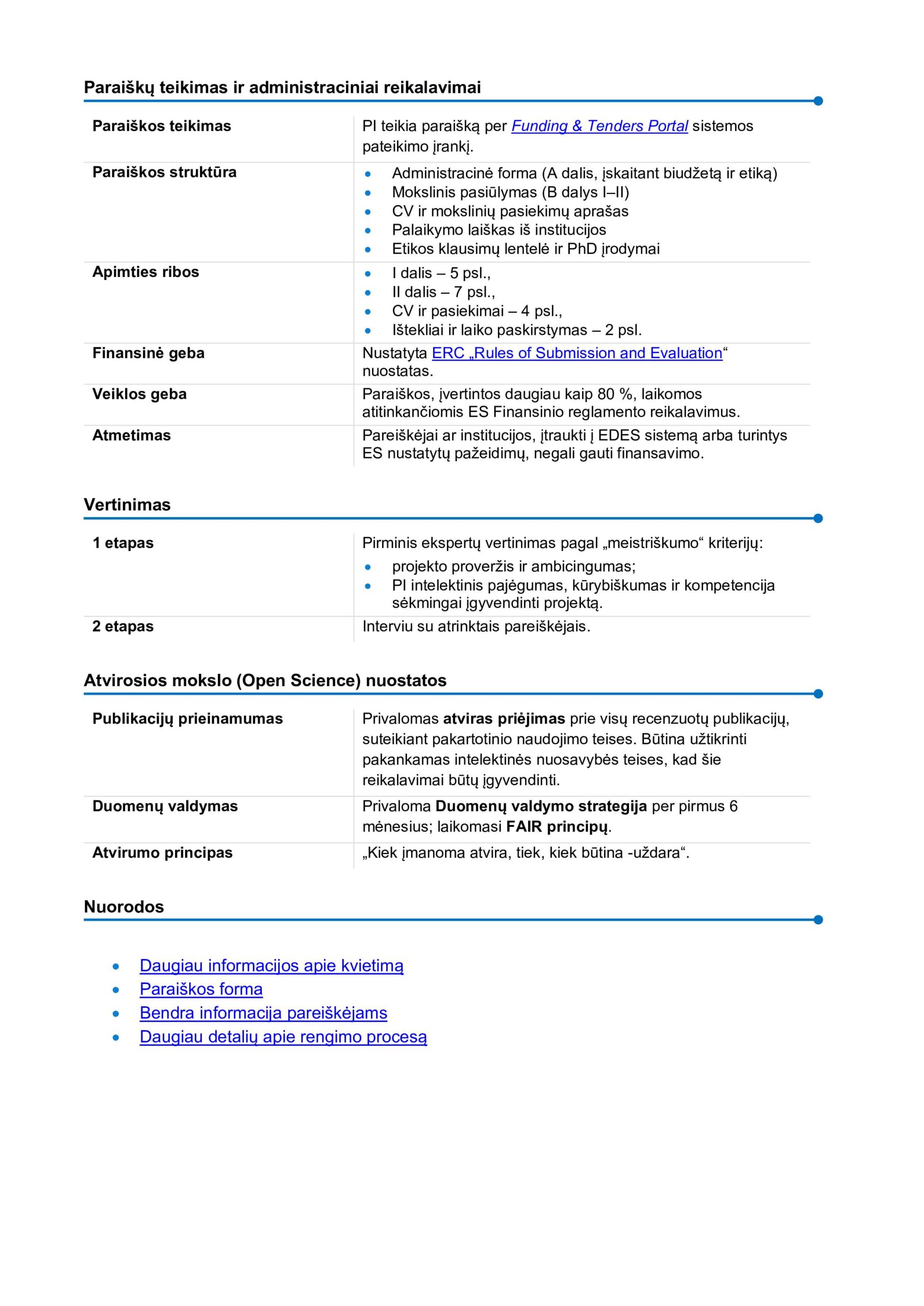 Europos mokslo taryba (European Research Council, ERC) paskelbė naują kvietimą teikti paraiškas finansavimui gauti.