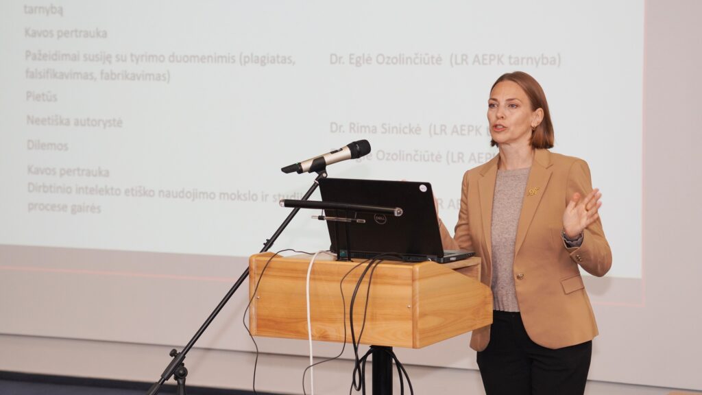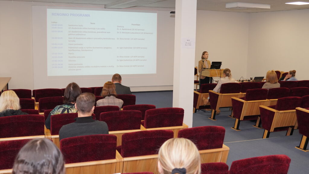 Seminaro metu buvo pristatyta LEI akademinės etikos komisijos veikla ir LEI etikos kodeksas, aptarti pažeidimai, susiję su tyrimo duomenimis, neetiška autoryste, pateiktos dirbtinio intelekto etiško naudojimo mokslo ir studijų procese gairės.