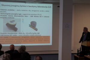 Renginio pradžioje LEI Mokslinių tyrimų, eksperimentinės plėtros ir inovacijų perdavimo centro projektų vadovas Dr. Rimantas Levinskas pristatė pranešimą „Instituto MTEP veiklos nuo žemiškųjų technologijų iki dirbtinės Saulės Žemėje“, kuriame prisiminė bendradarbiavimo su liejykla ištakas ir apžvelgė Instituto MTEP veiklas, vykdytas KKL „Centrolitas“ užsakymu, kuriant polimerines kompozicijas ketaus gaminių defektams taisyti bei sintetinio granito technologiją.