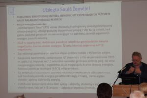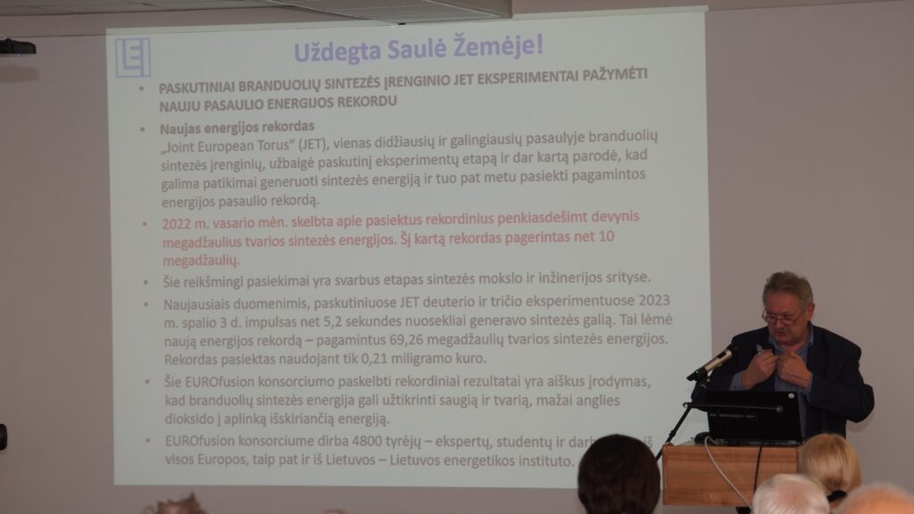 Pranešimo pabaigoje R. Levinskas papasakojo apie LEI Branduolinių įrenginių saugos laboratorijos įgytą patirtį užtikrinant Ignalinos atominės elektrinės saugią eksploataciją ir jos pritaikymą dalyvaujant EUROfusion programoje, siekiančioje panaudoti branduolių sintezės energiją elektros gamybai.