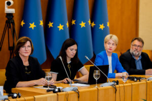 Kiti pranešėjai taip pat aptarė savivaldybių skaitmeninės ir žaliosios transformacijos galimybes pasitelkiant Europos skaitmeninių inovacijų centrų paslaugas (dr. Artūras Jakubavičius, Lietuvos inovacijų centras), žiedinės ekonomikos vaidmenį miestų kelyje į tvarumą (doc. dr. Visvaldas Varžinskas, KTU Aplinkos inžinerijos institutas) bei atvirųjų duomenų platformų ir duomenų svarbą savivaldybių veikloje (Vadimas Ivanovas, Valstybės duomenų agentūra).